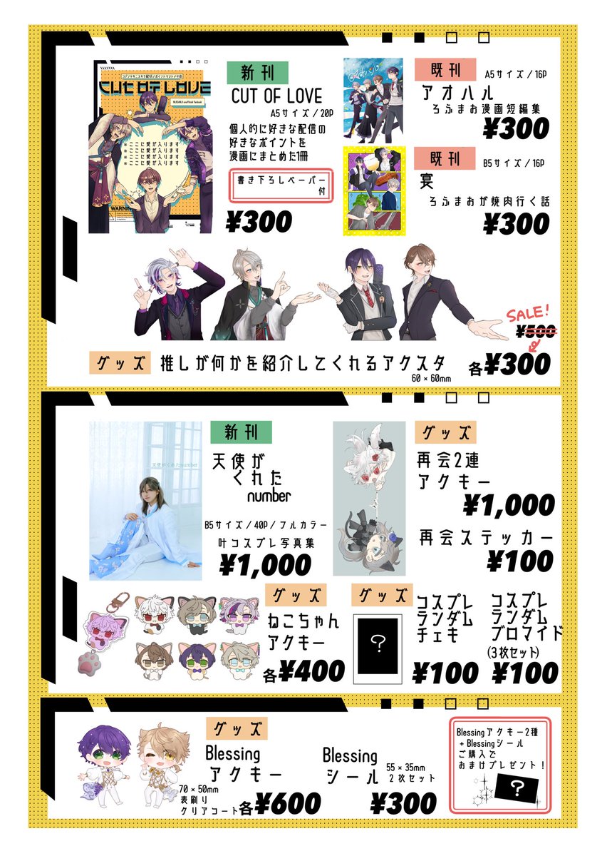 36 112 #にじそうさく07 お品書きです‼️ 詳細やサンプルはリプ欄に載せていきます‼️ 当日は画像と同じものをポスターとして置いておくのでそれを目印に‼️【し03】にてお待ちしております‼️ 23/04/27 09:03