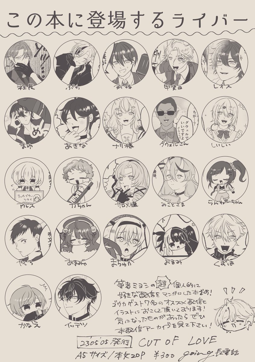 5 9 #にじそうさく07 【サンプル】新刊 CUT OF LOVE A5サイズ/本文20p ¥300 私の超個人的に好きな配信を漫画にしてまとめた本です! 豪華ゲスト7名もお迎えしております! よろしくお願いいたします‼️ 23/05/01 20:05