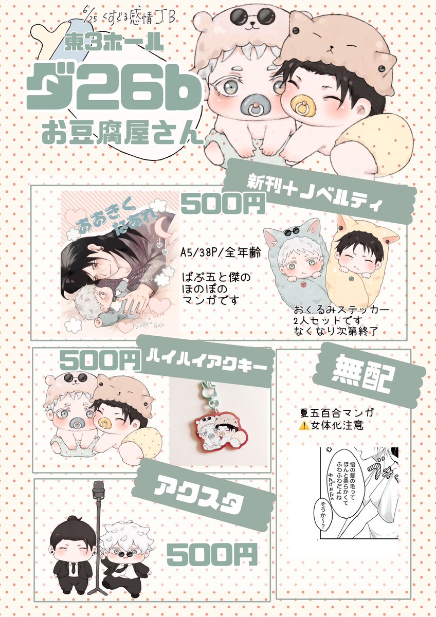 【6/25 くすぐる感情JB2023 新刊】 『おおきくなあれ』(A5/38P/全年齢) 夏とばぶ五のほのぼのエピソードを 詰めました🍼 少し長めのサンプルは支部にあげてます pixiv.net/artworks/10893… 当日はよろしくお願いします! (1/2)