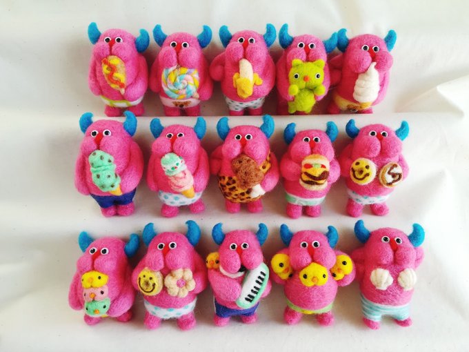 6 25 今回作ったストラップになります😉各1~2個用意しましたが当日全種類並べるのは難しいのでお声がけいただければ在庫をチェックいたします👍よろしり~🙏 #デザフェス #羊毛フェルト 19/11/10 11:41