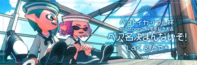 イカップル杯のヘッダー描かせて頂きました🐬お2人とも素敵なカップルさんで描いていて楽しかったです!(※ご本人様以外使用禁止です)