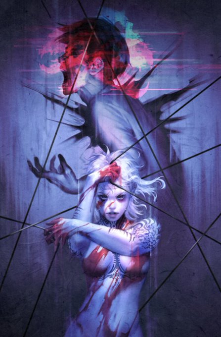 Hi #PortfolioDay! I'm Red, a Filipino illustrator. 🇵🇭 I do covers for comics, books, and albums. Focus: horror, dark fantasy, hands, the colour blue.