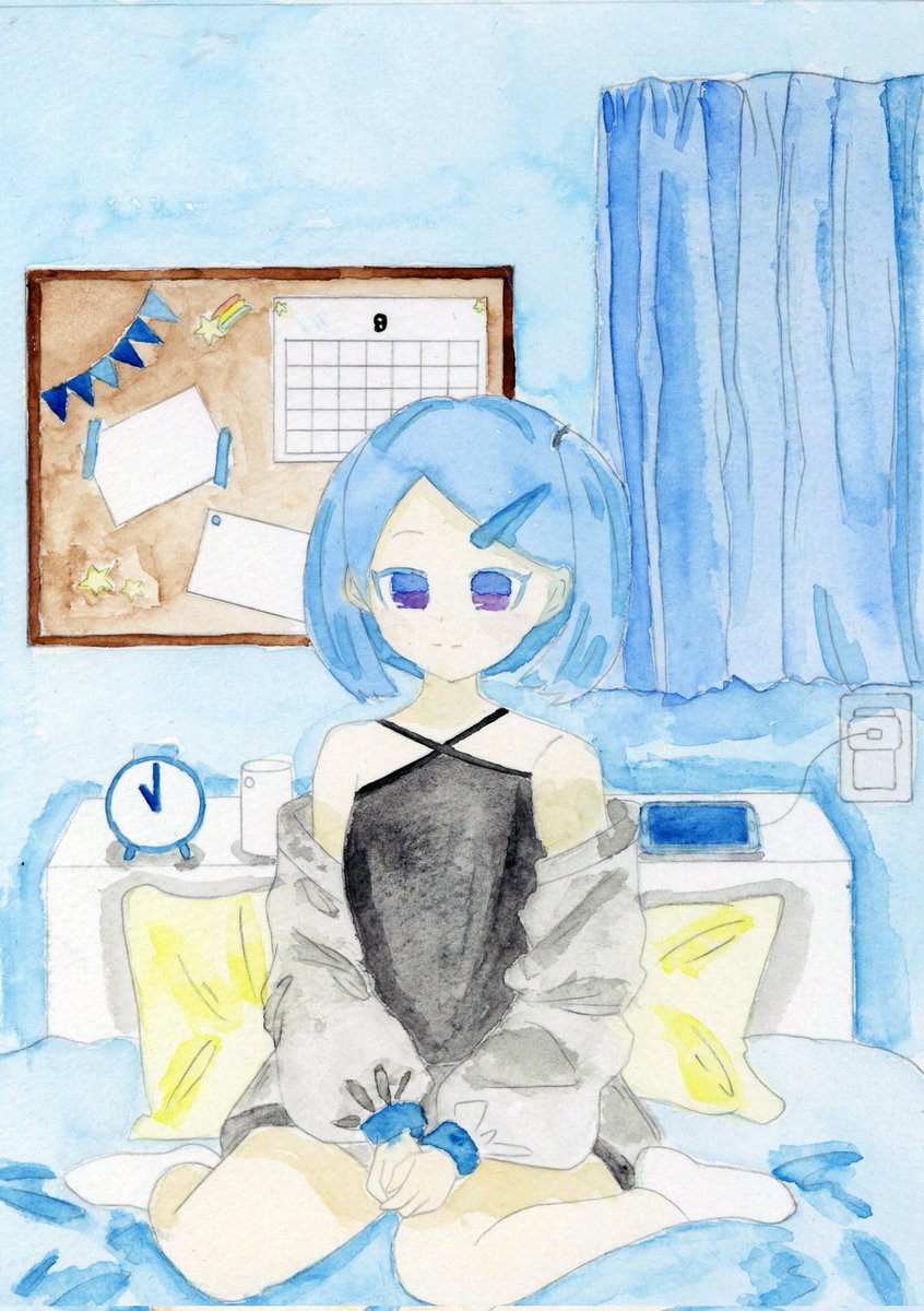 可愛く塗れた💙 #イラスト #水彩