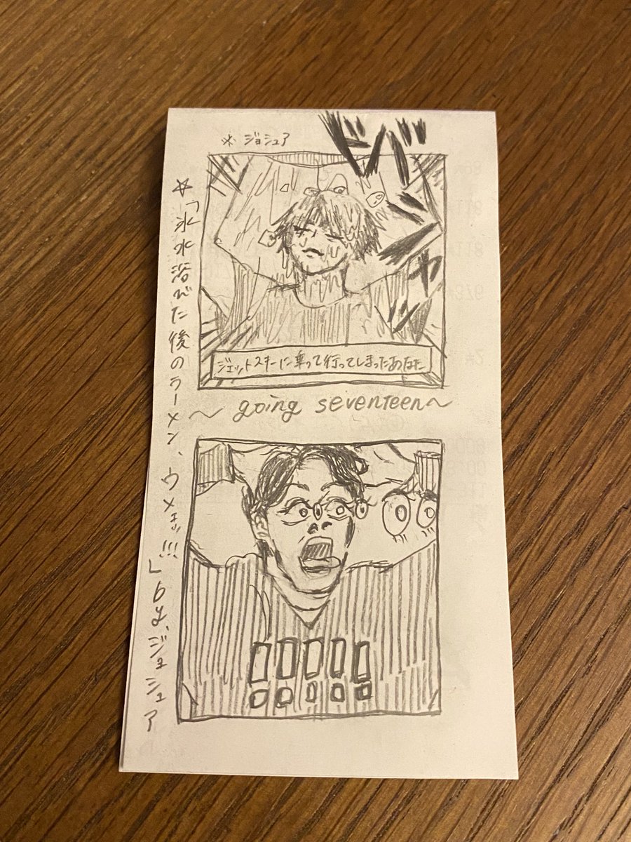 4 21 レシートの裏に描いたジョシュアと頭おかしいverのジョシュア #seventeenfanart #JOSHUA #조슈아 22/05/06 00:16
