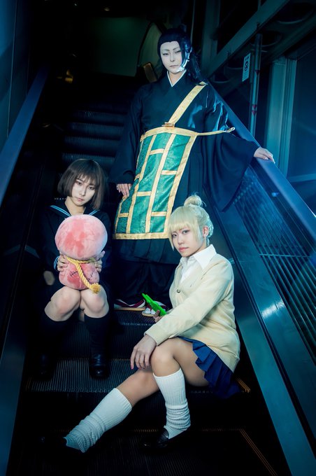 コスプレ/呪術廻戦 時が来たよ家族達…… 枷場菜々子@Kajika_Na 枷場美々子@Cos_Iris20 夏油傑@ositemairu_hd #ハコアム大阪 #ハコスタジアム大阪 📷:ハコアム大阪カメラマンサービス@610_photo