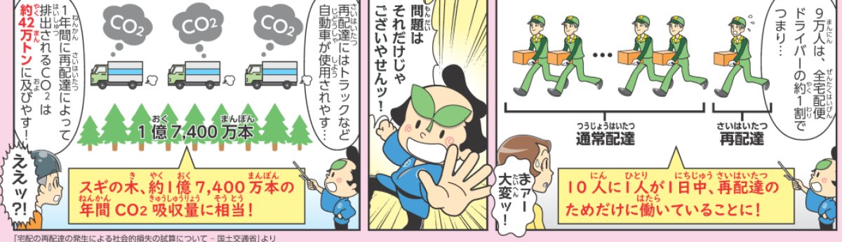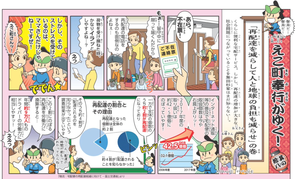 年末年始は宅配サービスの利用が増えるのでは? センター情報紙えこっとOSAKA連載中のマンガ「えこ町奉行がゆく!」のバックナンバーから「『再配達を減らして人と地球の負担も減らせ』の巻」をご紹介します! 他のバックナンバーはこちら→osaka-midori.jp/ondanka-c/mang… #漫画が読めるハッシュタグ