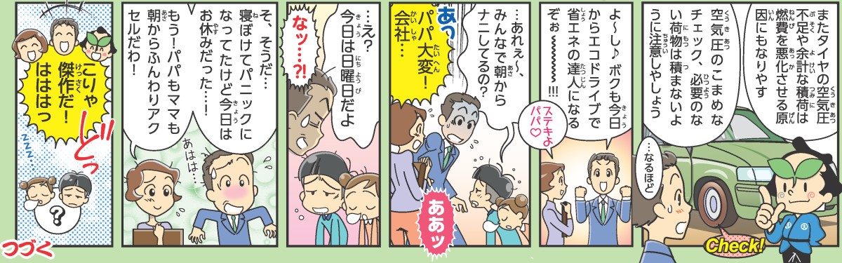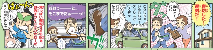 暖かくなってきてお出かけの機会も増えるのでは? センター情報紙えこっとOSAKA連載中のマンガ「えこ町奉行がゆく!」のバックナンバーから「『御用だ!車の急発進・急加速』の巻」をご紹介! エコドライブを実践しよう😊 他のバックナンバーは👉osaka-midori.jp/ondanka-c/mang… #漫画が読めるハッシュタグ