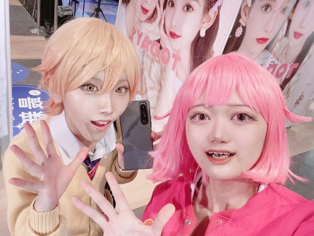 アコスタお疲れ様でした〜!!!🙏🏻💕 これはTikTokのスクショのにこにこorku🫰🏻🫰🏻 明日は初めて布から自作した衣装のあるみんつき3人で併せですたのしみ🥺✨✨ #アコスタ池袋 #Uアコスタ2023