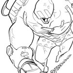 vs. ハンマーヘッド・ショベル ・重機の廃材で武装された大男、ショベル頭が特徴 ・体にネジを打ち込んでも微塵も痛みを感じない特殊体質 ・スラムの廃工場の怪人、侵入者を怪力で轢き○す ・得意技は「Wラリアット」 #創作 #落書き