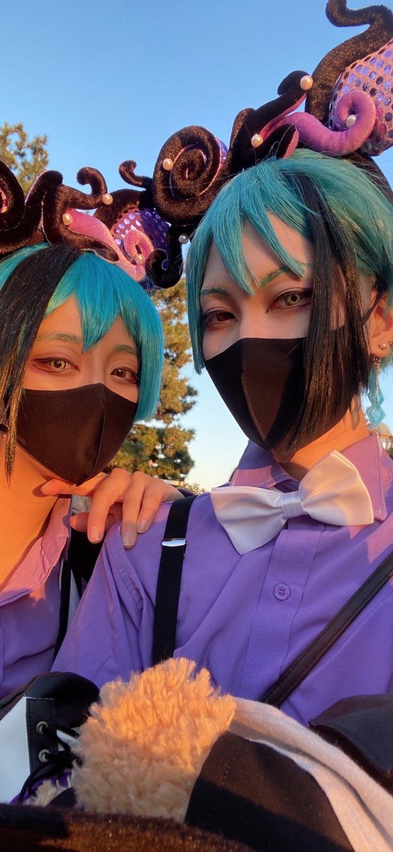 10/19🏰 スケアリー♣️🐬 10/20🌊 寮服🦈🐬 でDハロにインパしてました!! 初のDハロは最高でした✨来年も参加したいと思います!話しかけて下さった監督生or小エビちゃんはDMでお写真送って頂けると嬉しいです!! 両日🐬(@Lilith1105A ) #Dハロ仮装2022 #Dハロ仮装