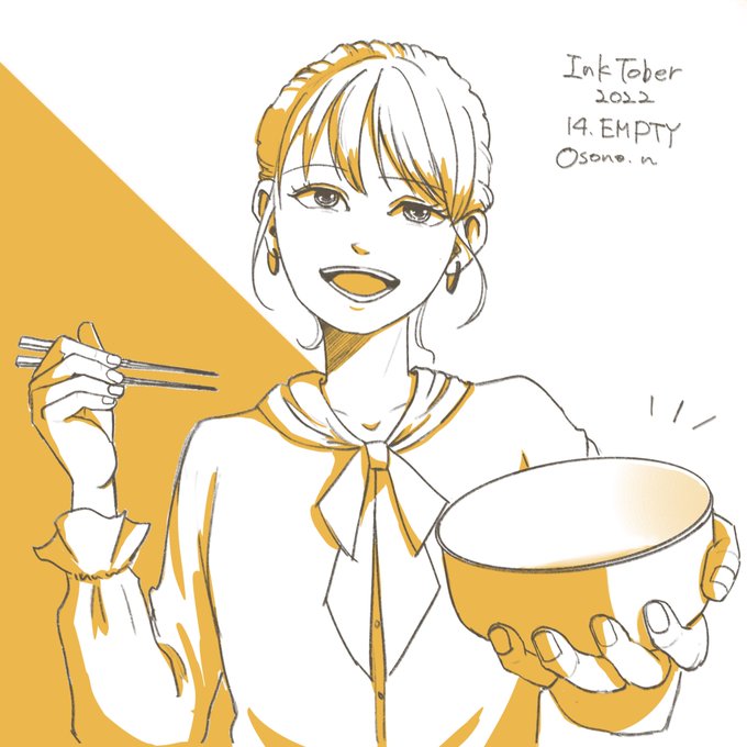 Inktober 14.EMPTY おばちゃん、オカワリ!🍚 #inktober2022 #inktober22 #インクトーバー2022 #inktober #inktober_perfectchallenge 食堂でたくさん食べるOLさん👏