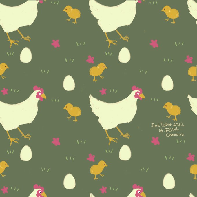 inktober 16.FOWL ニワトリちゃんとひよこちゃん #inktober2022 #inktober22 #インクトーバー2022 #inktober_perfectchallenge 何気なくパターンになってるよ〜