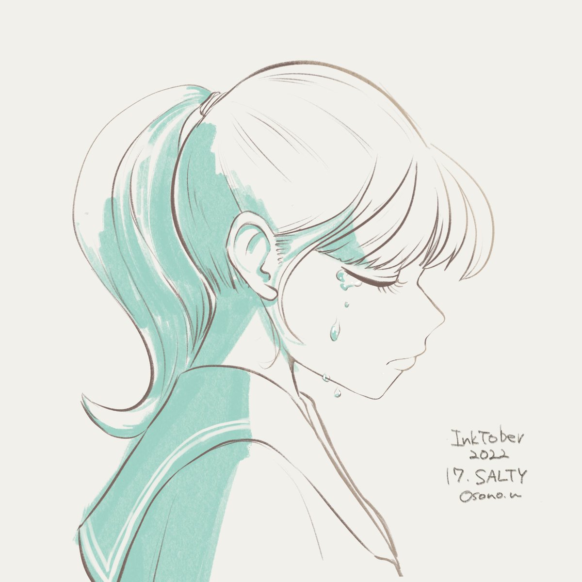 inktober 17.SALTY しょっぱい思い出を拭って #inktober2022 #inktober22 #インクトーバー2022 #inktober_perfectchallenge