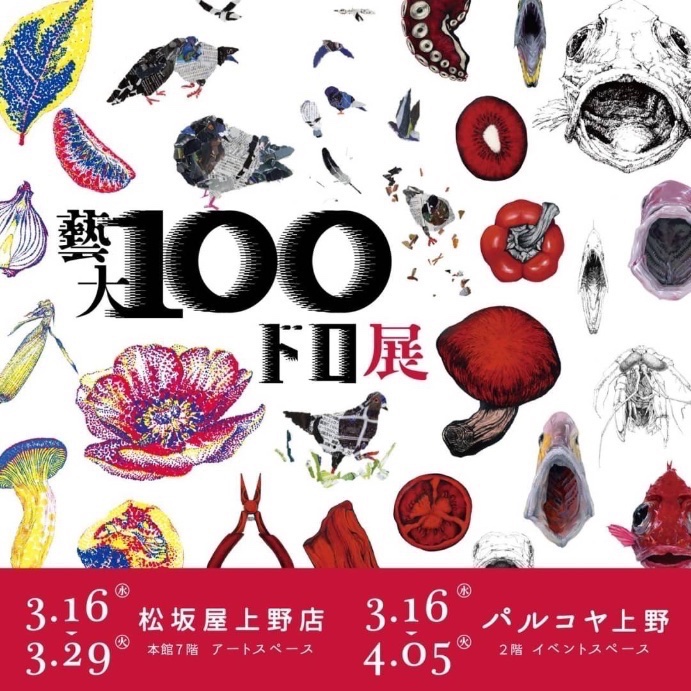 27 415 藝大100ドロ展 松坂屋上野店 3/16 - 3/29 パルコヤ上野 3/16 - 4/05 東京藝大デザイン科1年生のクラス展示です。 自分は指で描いた絵を9点展示します、何卒〜! 22/03/09 21:48