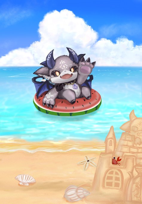 なつのでびさま👿🍉🛟🐚🦀 #でびるさまにささげるえ