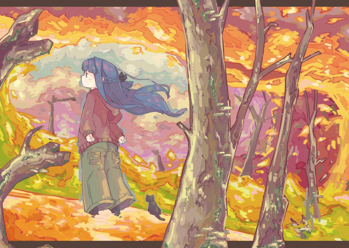 13 33 #皆さん線画と塗った後を見せてください すこーし前に描いた雪美ちゃん 秋が一番好きな季節なのですごい頑張った記憶がある...同人誌用に描いた絵ですが、本来はこんな色でした 20/11/16 22:37