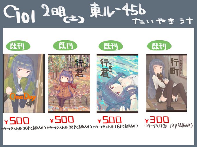 21 25 c101のお品書きです 2日目(土)東ル-45b たいやき汁 既刊のみになります...申し訳ございません。 22/12/29 23:29