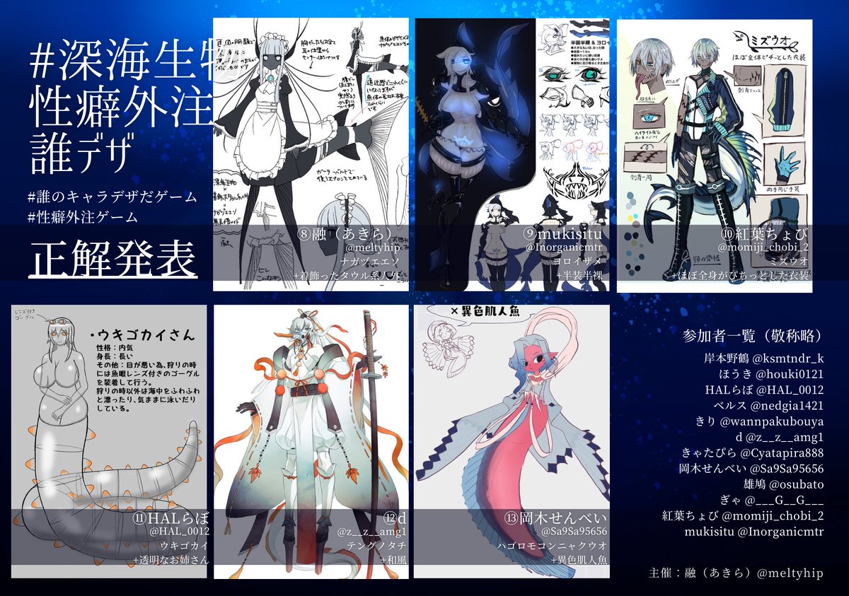 #深海生物性癖外注誰デザ 正解発表~~! ショタの注文を受け、⑤の子を描かせていただきましたー! 密かに描きたいなと思ってたらシャッフル回ってきた上に、矮雄という単語を知って興奮しながら描きました アンケは初のゼロ!ッシャオラァ!! twitter.com/osubato/status…