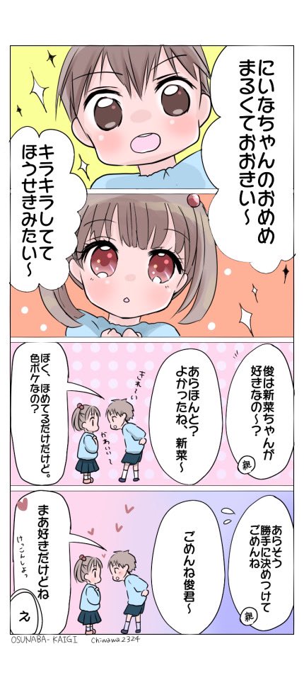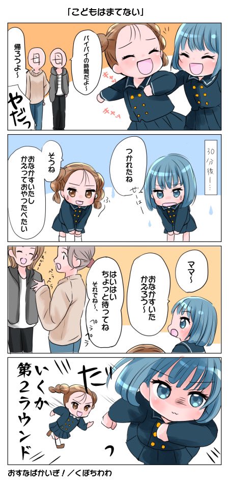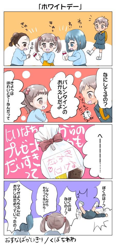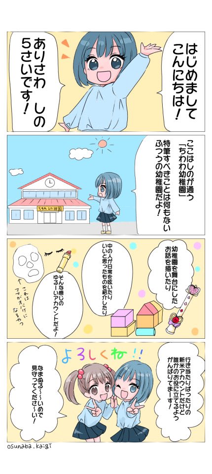 #三連休はフォロワーさんが増える #漫画が読めるハッシュタグ タグの力をお借りします…! 創作幼稚園児たちの園生活をゆるーくかわいらしく4コマにしています🙌✨ ちょっとスローペースではありますが…💦 ネタ提供は主に幼稚園に通う娘たちです。 #おすなばかいぎ