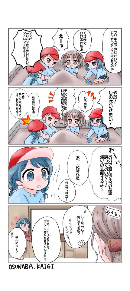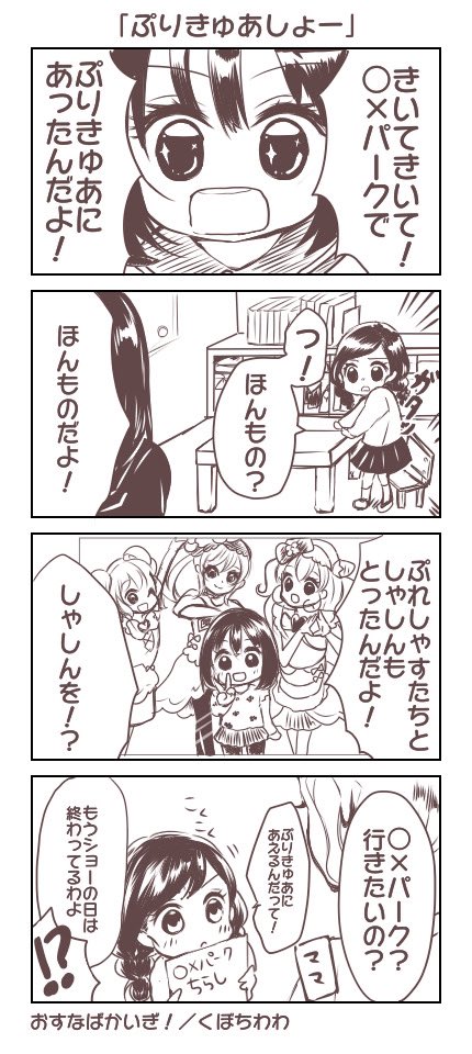 「ぷりきゅあしょー」 うちはアトラクション優先で撮影会には並びませんでしたがとても人が多かったですね😇 ぷりちゅあ雑ですいませんw #漫画が読めるハッシュタグ #マンガが読めるハッシュタグ #四コマ #4コマ #創作漫画 #おすなばかいぎ