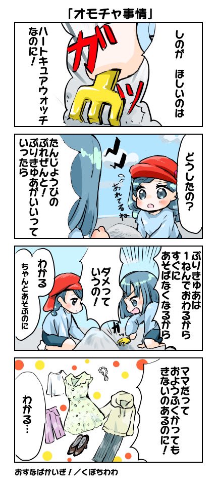 プリキュアは1年で次の作品になるからっておもちゃ買わない親は多いと思うけど、うちの子未だにヒーリングステッキ遊びますよ! #創作漫画 #4コマ #四コマ #漫画が読めるハッシュタグ #漫画がよめるハッシュタグ #おすなばかいぎ