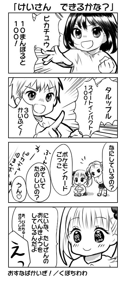 「けいさんできるかな?」 長女(5)はポケモンカードで足し算覚えました😂 なんなら引き算も😂😂 ポケカは1種の教材ですね😇✨ #漫画が読めるハッシュタグ #マンガが読めるハッシュタグ #四コマ #4コマ #創作漫画 #おすなばかいぎ