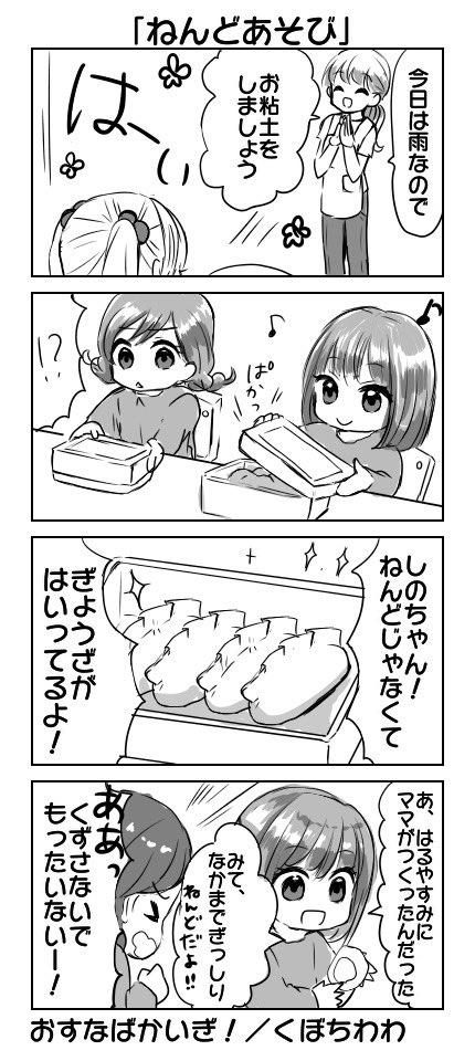 「ねんどあそび」 お察しの通り、現実でやったのは私です。 あとはパンも作りました( ˇωˇ ) おねんどたのしい( ˇωˇ )✨ #創作漫画 #四コマ #四コマ漫画 #4コマ #4コマ漫画 #漫画が読めるハッシュタグ #マンガが読めるハッシュタグ #おすなばかいぎ