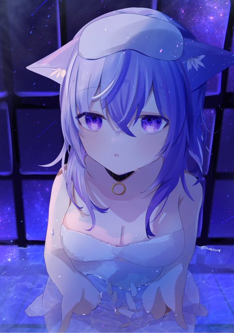 #絵かゆ #猫又おかゆ 「いい湯だなあ…」