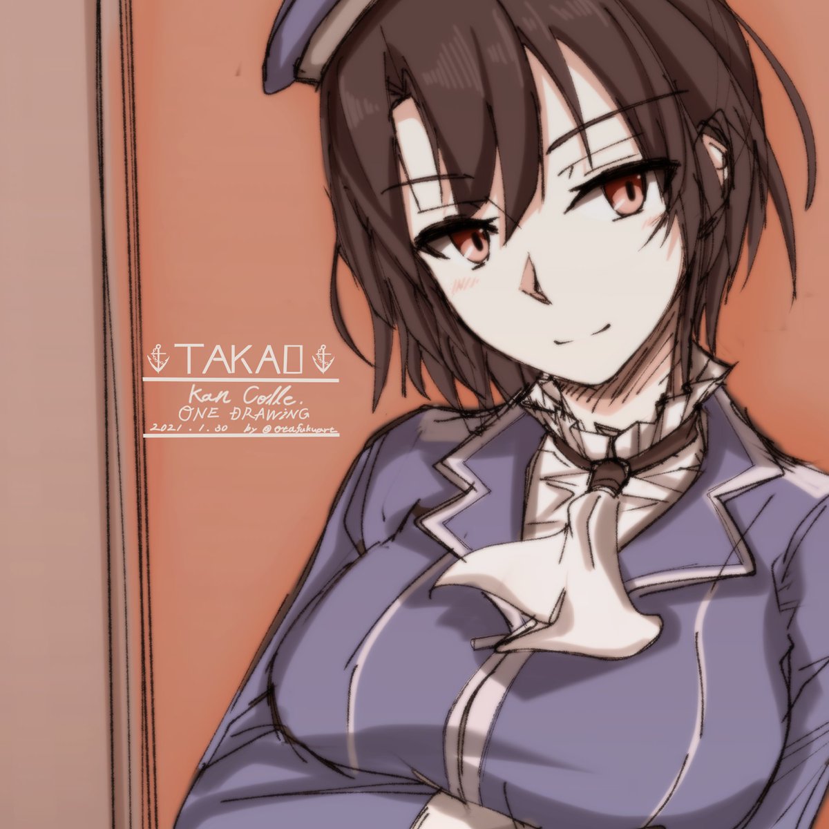 #艦これ版深夜の真剣お絵描き60分一本勝負 #艦これ版真剣お絵描き60分一本勝負_20210130 高雄 こういう髪の感じ結構好き笑