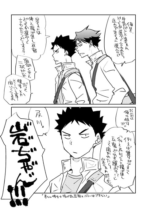 21 100 岩泉牛乳パンが3桁行く前に上げようとしてたよくわからない阿吽の漫画。及川さんは最近彼女にこんな感じでフラれたと思います。 23/07/11 21:39