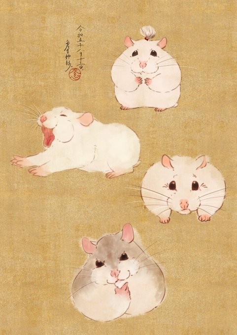 フォロワー様が増えたので、 改めまして #自己紹介 。 ハムスターを日本画風に描いております おたま姉妹です。 これからも新作の公開や活動報告など発信して参りますので、どうぞ末永くフォローして頂けますと大変励みになります! ご依頼は概要襽メールアドレスまで✉ よろしくお願いします🐹