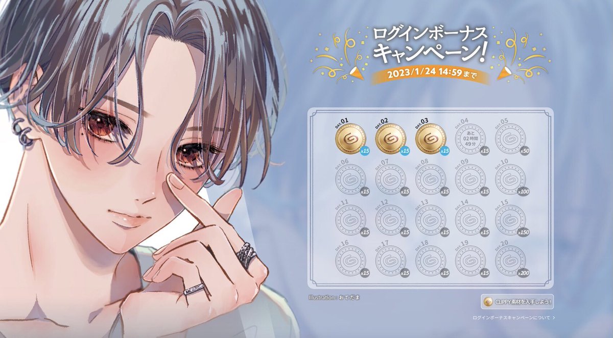 クリスタさんのログインボーナスに、コラボした時のイラスト使って頂きました! びっくりしてスクショしました😳嬉 おそらく3日目だけ表示されると思われるのでCLIPSTUDIOユーザーさんでまだの方はぜひクリッピーGETついでに見てみてください💖 コラボした時の動画はこちら↓ youtu.be/e9YzL5D2YEA