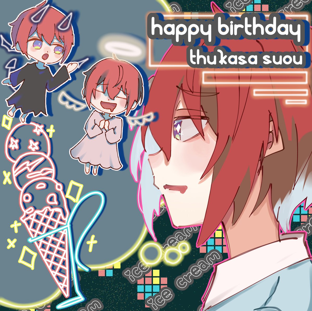 #朱桜司誕生祭2022 #朱桜司生誕祭2022 😈「瀬名先輩がいません!Chanceです!」 👼「ですって、食べちゃいましょう🎶」 真面目でお茶目な末っ子騎士⚔️✨ お誕生日おめでとう〜‼️