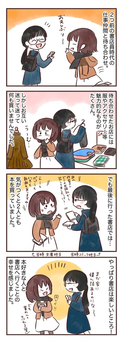 続きは書籍「本屋図鑑 だから書店員はやめられない!」をぜひ読んでやってください✨ TSUTAYAさん、蔦屋書店さんの一部店舗限定で、4コマ冊子の無料配布もしていただいております📚ゴールデンウィークの読書にぜひ✨ #漫画がよめるハッシュタグ