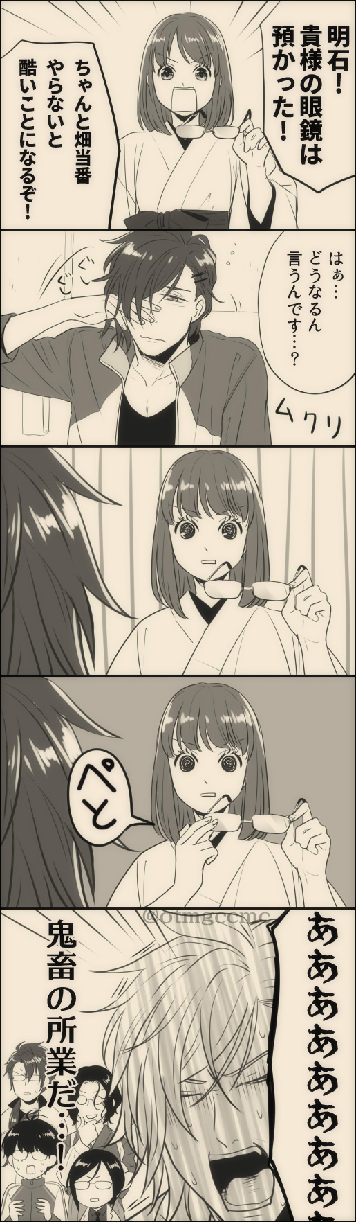 【宗三→←さに♀】 宗三に絶賛片思い中のさにわと主に恋してるが彼女は固定近侍のシュメイトアラバーに惚れてると思い込んでる宗三な拗れ両片思い宗さに。 久々の宗さにちゃん。 そして丁度いいタグがあったのでお借りした。 #ラッキースケベで審神者の着替えに出くわした刀剣男士の反応