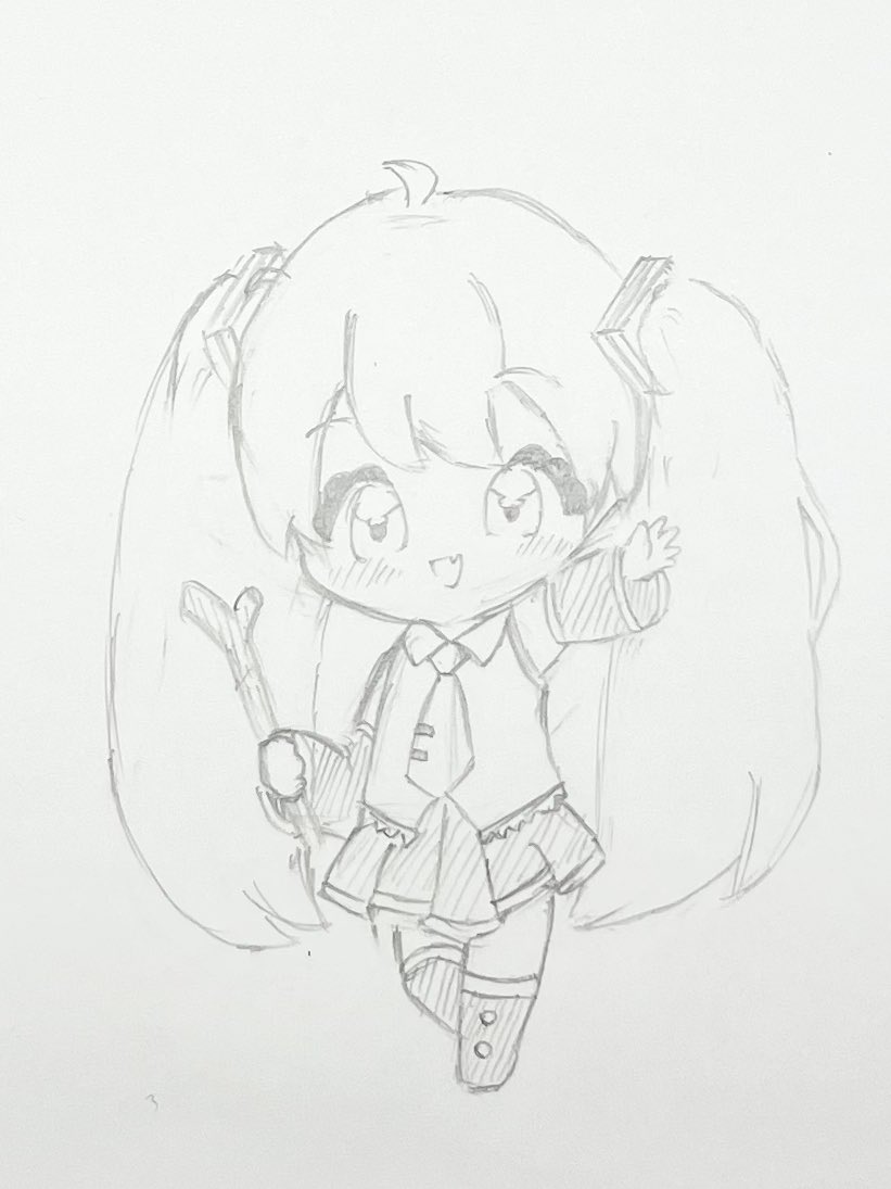 初音ミクちゃんのラフ! 昨日より上達してない? #初音ミク #イラスト #ミニキャラ