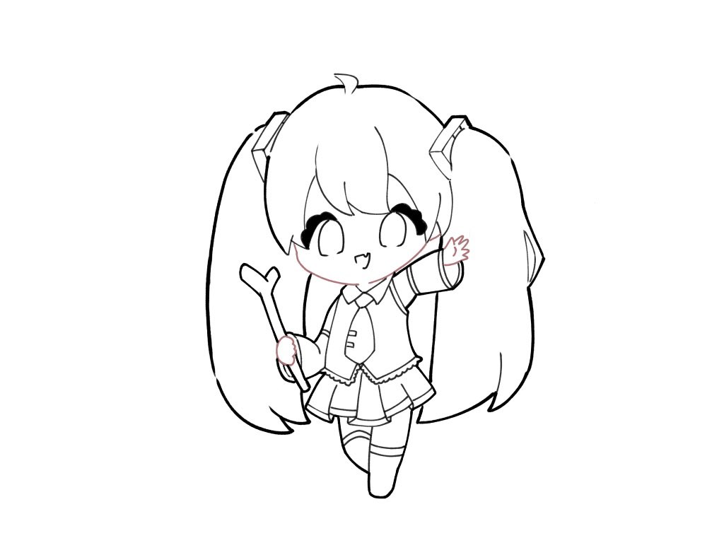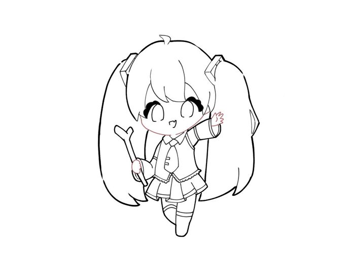 ミクちゃんの線画できました! フリー画材なので塗ってみてください! #初音ミク #イラスト #ミニキャラ #フリー線画