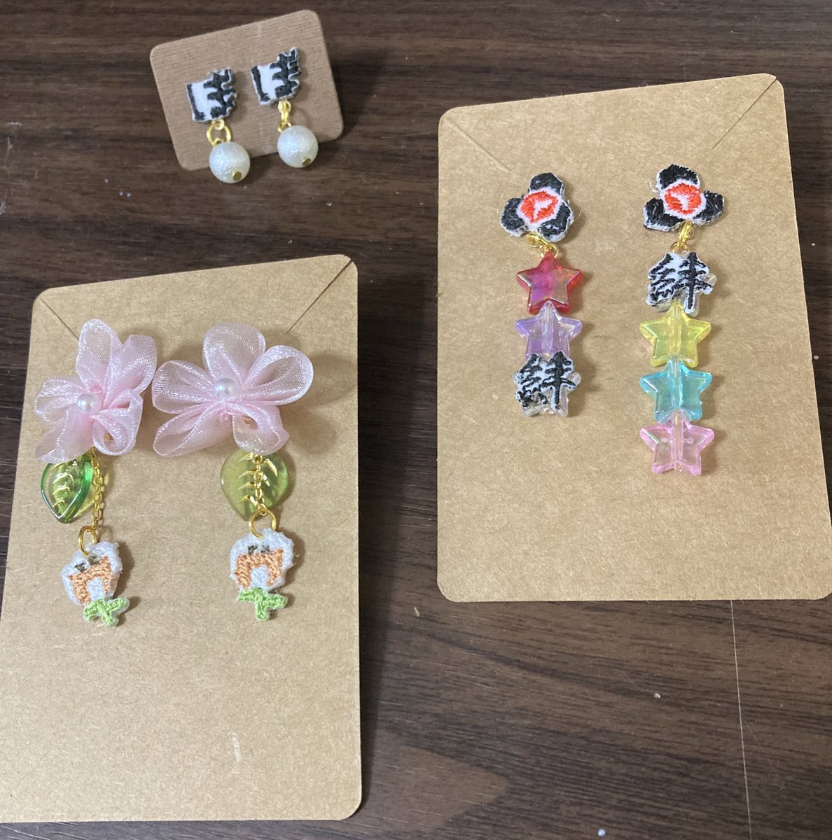 ドズル社ピアス(MSに怒られない編)(?)3選 ・耳にこっそり「「ぼ」」🍆 ・ふわふわお花ドズル像🌻 ・絆ッ!! です✋(笑) 「「ぼ」」つけながらこの後の仕事も頑張る✊😤✊ #ドズル社アート #ドズってる #ぼんさん何してんすか #はよ見ろやあ #誰でも見れますねぇ #見るかもわからん
