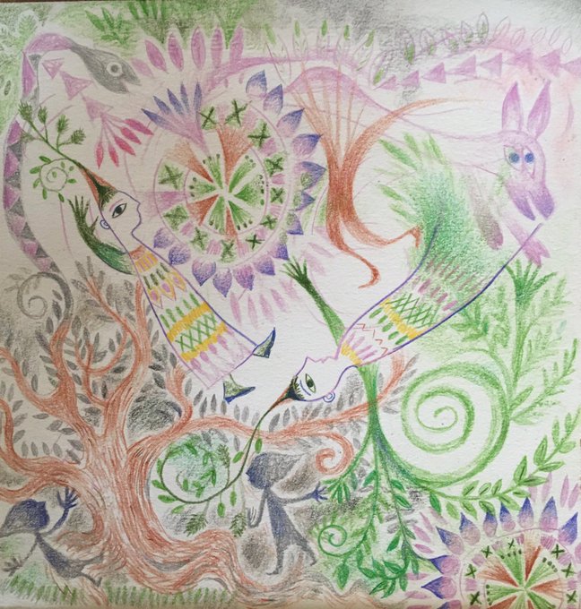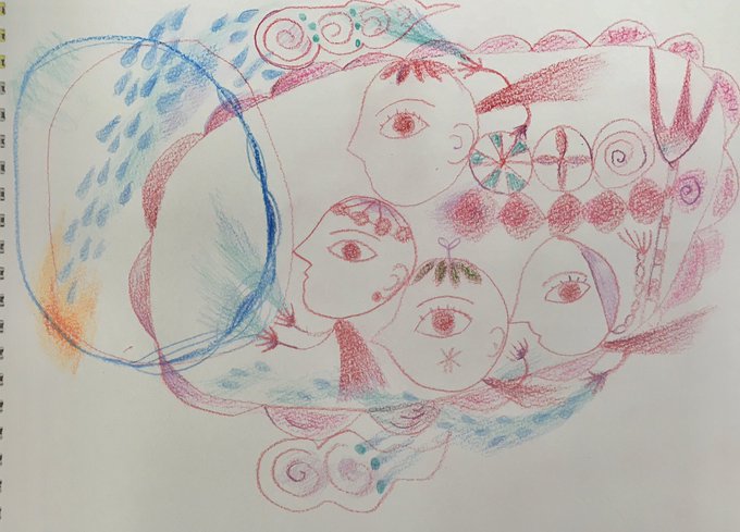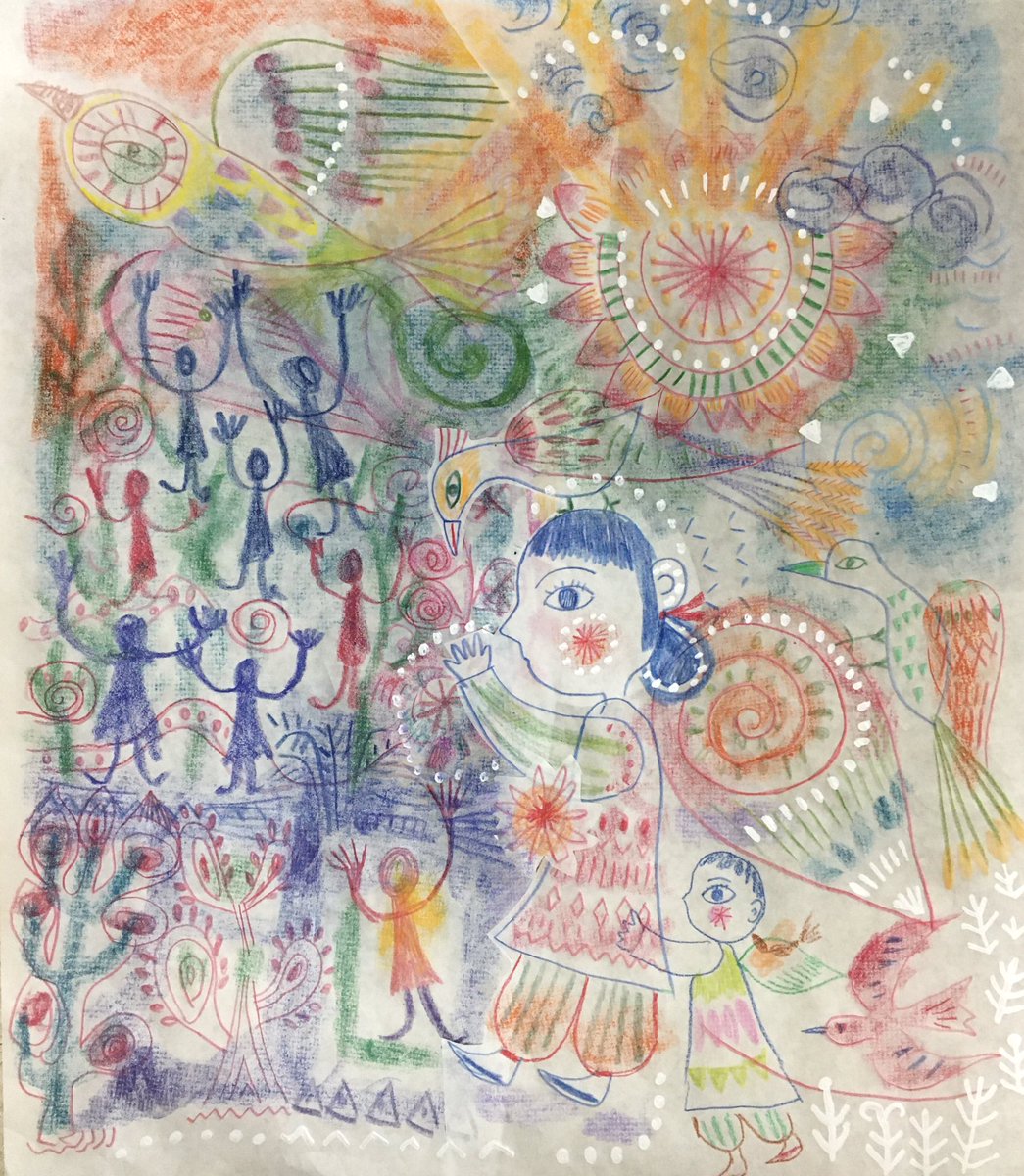 Guided by the goddess, I went into the dance circle 雨の日、夏の服はまだまだ出来上がらないけど。落書きは進むのでした。 #art #taracyanel #ハトロン紙でアート