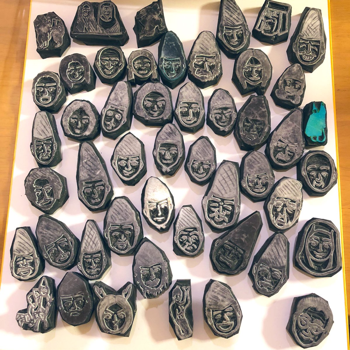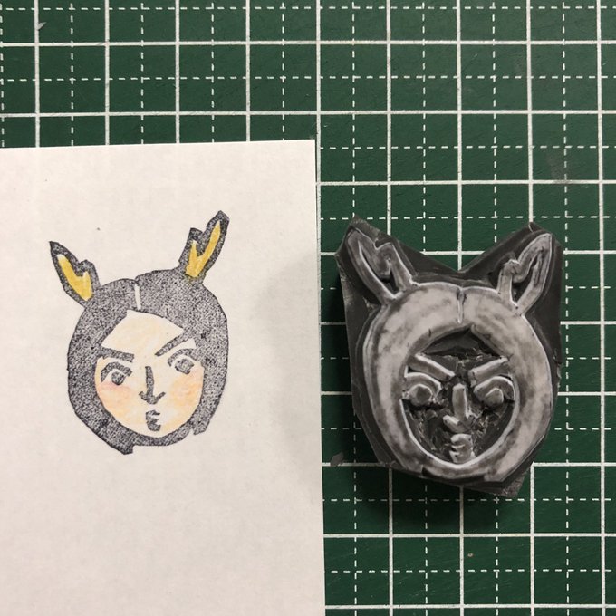 待って善児Tシャツ欲しいなあって見てたんですが、彫り貯めた消しゴムはんこならワンポイントにもフロントデザインにも無限の可能性があるんじゃない…?!?(妄想) #鎌倉殿の13人 #消しゴムはんこ