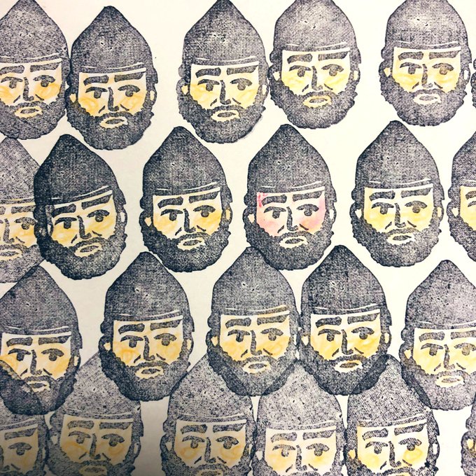 これは1人激おこ和田義盛を含む無数の和田義盛の消しゴムはんこ(増やして色塗った) 🦌 #鎌倉殿の13人 #殿絵 #鎌倉絵 #消しゴムはんこ twitter.com/otofu_fuu/stat…