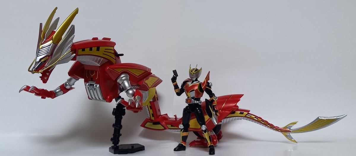 SO-DO CHRONICLE 仮面ライダー龍騎のドラグランザー届いた!装動系列としては破格の大きさで撮影スペースギリギリ。ドラグレッダーが小さく見える…尻尾は剣として龍騎サバイブに装備できます。
