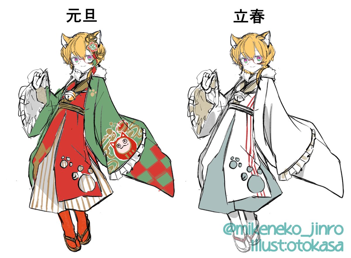 ひと段落したので、 …にて描かせていただいたみけねこくんちゃんの衣装ラフを公開させていただきますね。 控えめ金銀カラーもかわいいので見てくれ、見てくれた?ありがとうございます(੭˙꒳˙)੭ twitter.com/mikeneko_jinro…