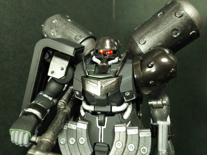ギラ・ズールの頭部を見てたらツインアイにしたくなりまして。 ネタが古いですよね〜😁 #紅い眼鏡 #プロテクトギア #ガンプラ #ガンプラの画像貼るとRTされると聞いて #ガンプラ好きな人と繋がりたい