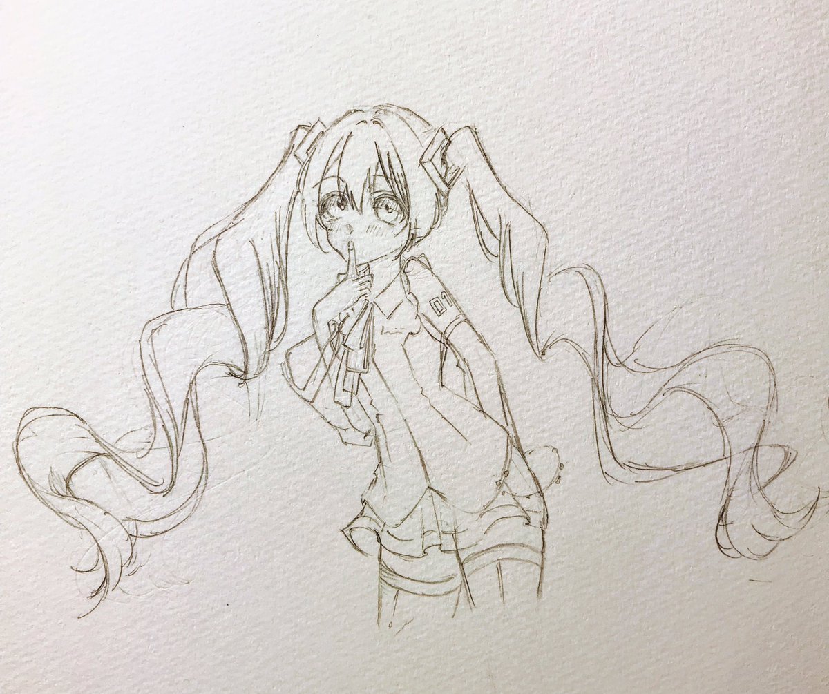 初音ミクちゃん描いてみましたぁ! 良ければいいねお願いします! #中学生絵師さんと繋がりたい #初音ミク #イラスト好きさんとつながりたい #中学生でこれは上手いと思ったらRT #アナログイラスト