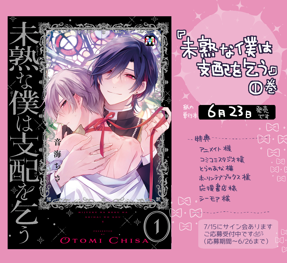 【⛪お知らせ】 『未熟な僕は支配を乞う』➀巻 2023年6月23日 単行本発売が決定しました⑅⃛ ⑅⃛ ⑅⃛ ①巻ということで、つまり続編も決定しました୨୧*. そして夏に初めてのリアルサイン会していただきます…!よろしくお願いいたします🙇♀️ 3つのお知らせでした! twitter.com/tokyomangasha/…