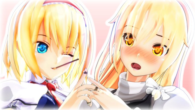 お胸評論家のぶんれい🦈君も参加🤣 🦈:しゃめぇっ…アリスちゃんだけずるいしゃめよ!! ボクもまざるしゃめ!(ピトッ❤️ 魔理沙:んなっ!?ちょっ、まてまてまて!! ……またかよ💧💧 🦈:ふぅ…。まるで実家のような安心感しゃめ///❤️ #霧雨魔理沙 #ぶんれいファンアート #ぶんれい編集はよ