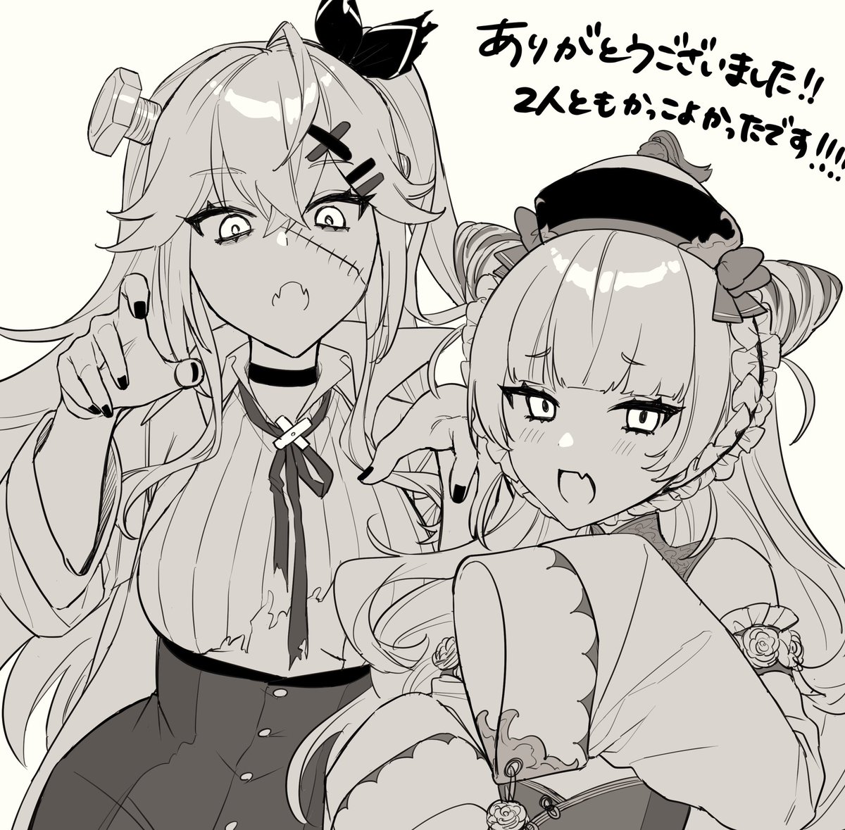 遅ればせながら、夏月ニナさんと眠森ペティさんの「Splatter Party」歌ってみたMVにてイラストを担当させて頂きました!なんとアクリルスタンドにもなりました…ありがとうございます!!😭 youtu.be/xM8zdLnI_iA 二枚目はハロウィンっぽいお二人のらくがきです😇 #ペティの絵本 #ニナチェキ