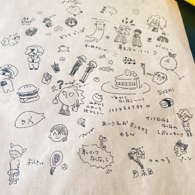 0 29 万年筆のインクが残り少ないので使い切るまで包装紙に落書きしようと思ったら思いの外しっちゃかめっちゃかになるまで描かないとなくならなかった 22/09/04 14:16