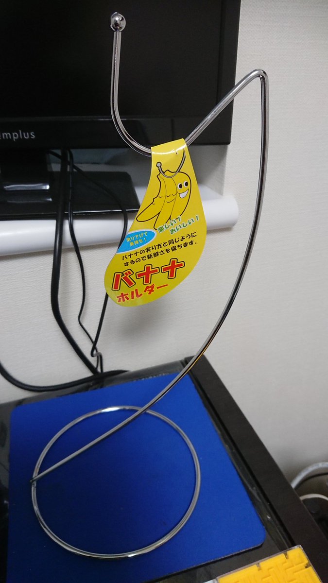 298 391 後輩氏が「キャンドゥで売ってる100円のバナナホルダーがヘッドホンスタンドに最適です」と言うもんだから、「何言ってだおめぇ」と思って買ってきたら成る程ヘッドホンスタンドだった。 19/04/26 21:59